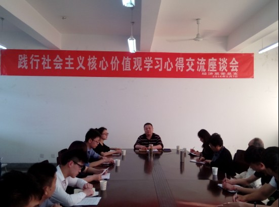 5月7号下午,经济系在东区会议室。开展了“践行社会主义核心价值观学习心得交流座谈会”。校关工委卢凡爱、吴素勤两位同志和经济系师生代表参加了本次座谈会。