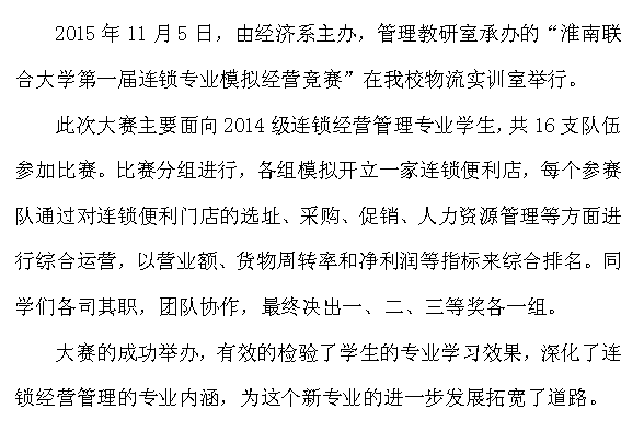 经济系成功举办淮南联合大学第一届连锁专业模拟经营竞赛