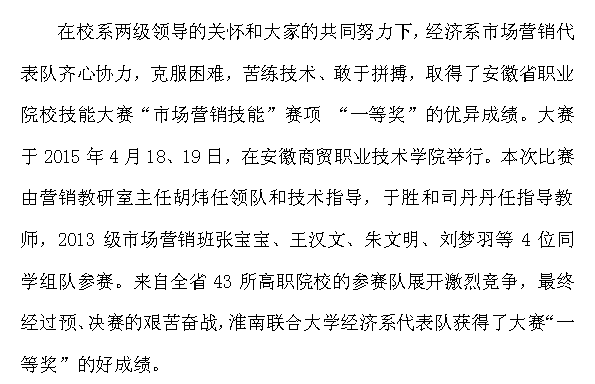经济系在安徽省2015年度职业院校技能大赛中再传捷报