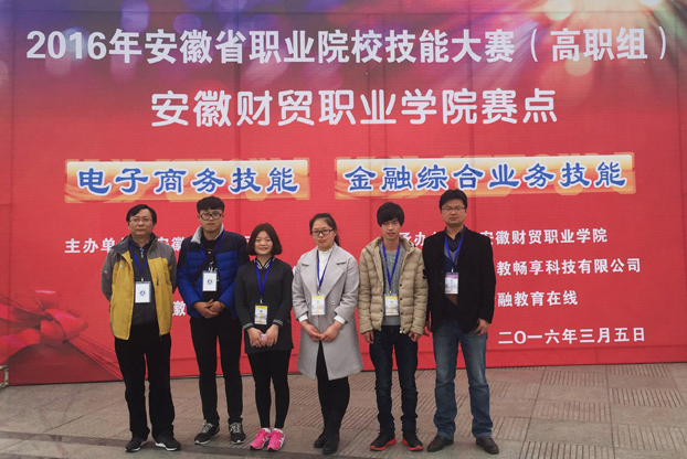 3月5日,安徽省职业院校技能大赛“电子商务技能”赛项在安徽财贸职业学院举行,来自全省38支职业院校代表队参加了此次竞赛。我校经济系电子商务专业龚栋雪、梁明铭、吴静博、阳波等四位同学组成的代表队最终以93.15分的总成绩,获得安徽省职业院校技能大赛(高职组)一等奖。