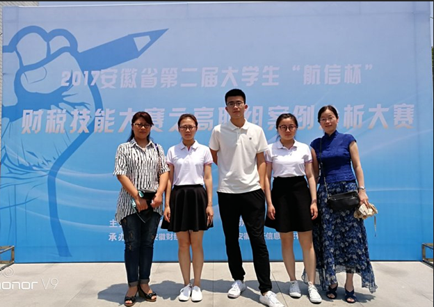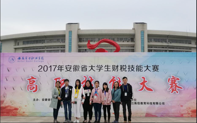 由安徽省教育厅主办、安徽财经大学承办、安徽警官学院和安徽审计学院协办的2017年安徽省大学生财税技能大赛,于10月21日圆满结束。本次大赛共分本科组技能大赛、高职组技能大赛和高职组案例大赛,全省共有62所高校508支代表队参加。我校经管学院会计专业共派出3个代表队9名同学参加,在老师和同学们的共同努力下,经过激烈角逐,喜获高职技能组一等奖一项、三等奖一项;高职案例组三等奖一项。这是我校会计专业首次参加财税大赛并取得优异成绩。